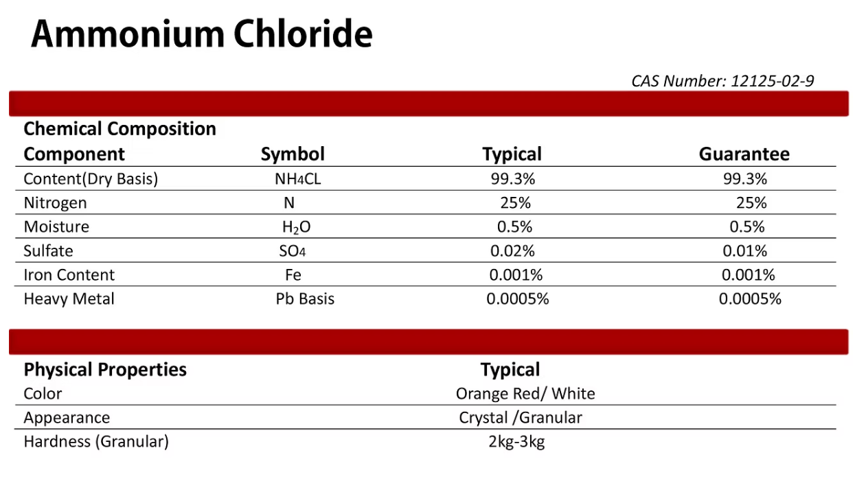 AMMONIUM CHLORIDECAS No.: 12125-02-9EINECS No.: 235-186-4Formula: NH4ClMolecular Weight: 53.49Usage: Mainly used in the industry of dry cell、electroplating、dye、precision casting、tannage、etchant、feed additive and etc.